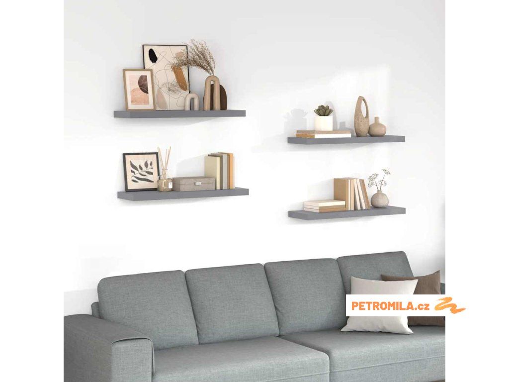 Plovoucí nástěnné police 4 ks šedé 80 x 23,5 x 3,8 cm MDF