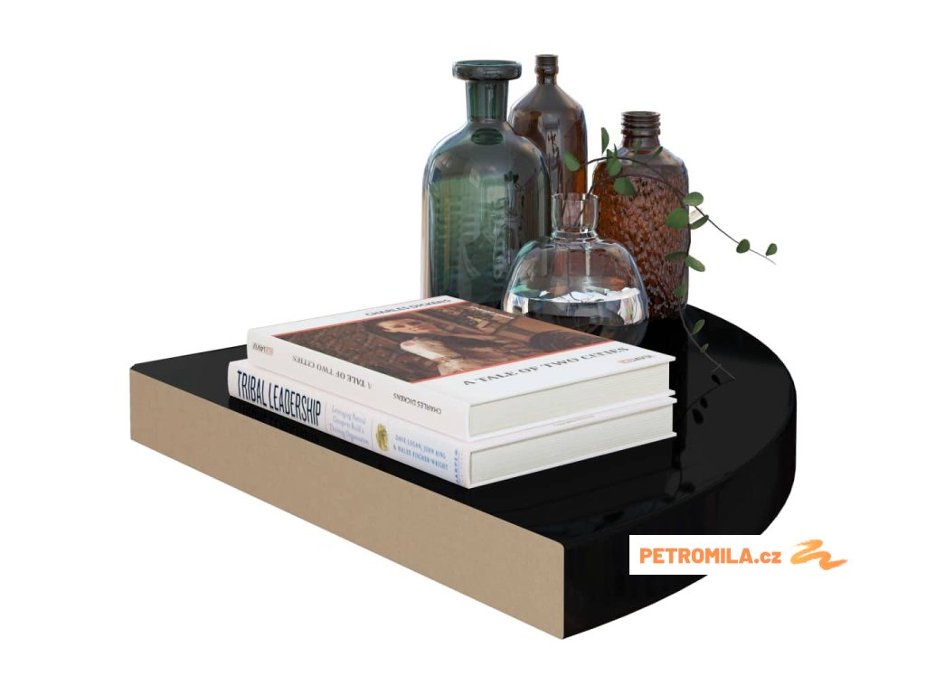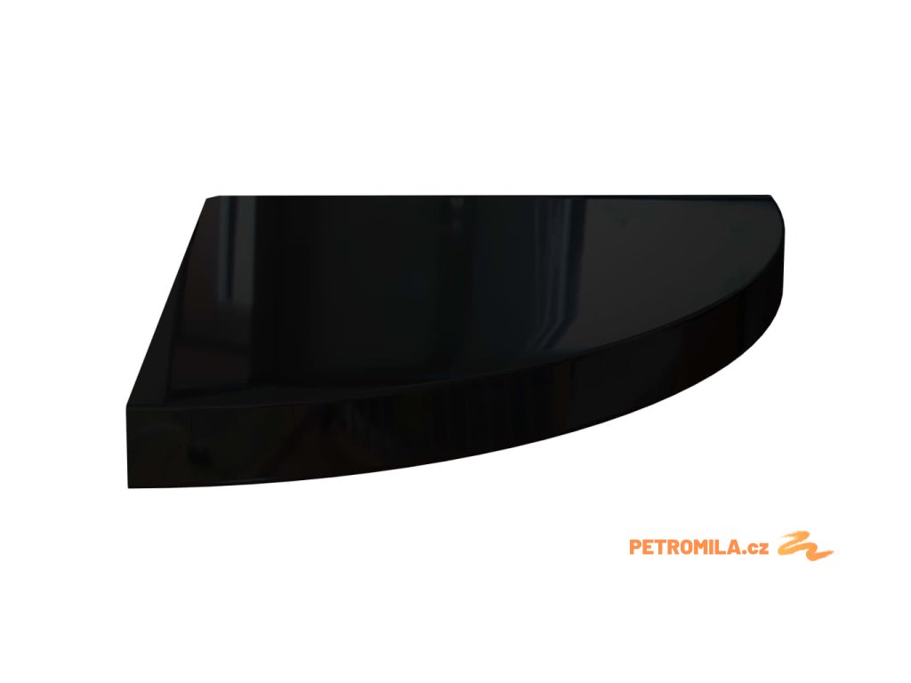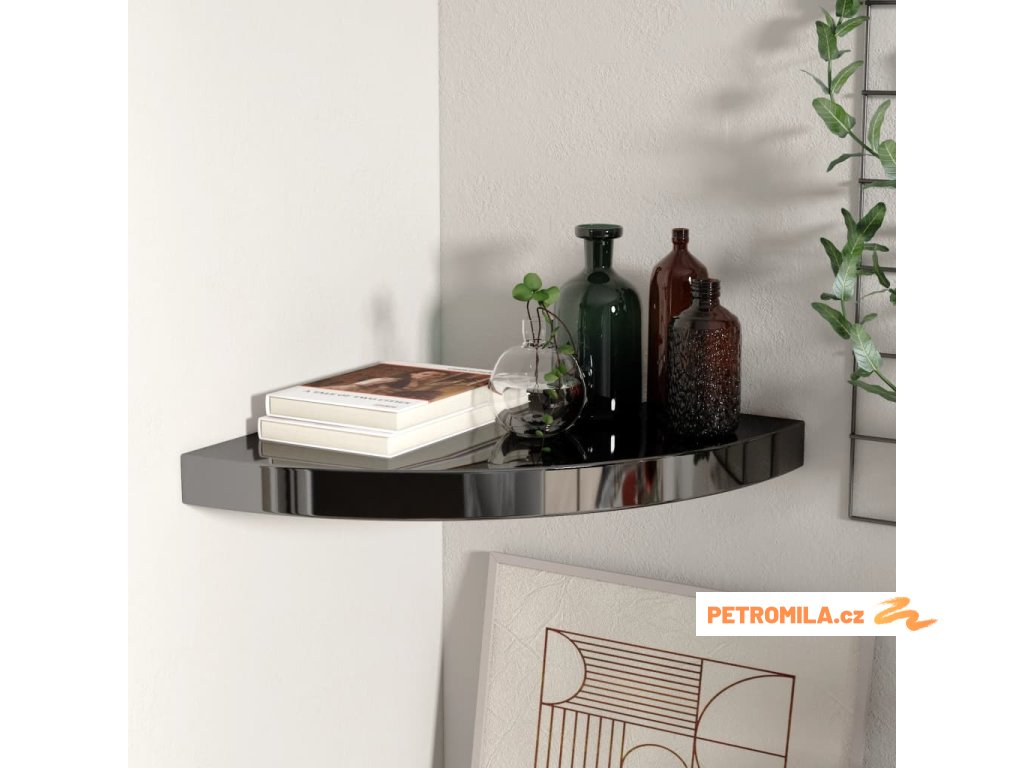 Plovoucí rohová police černá vysoký lesk 35 x 35 x 3,8 cm MDF