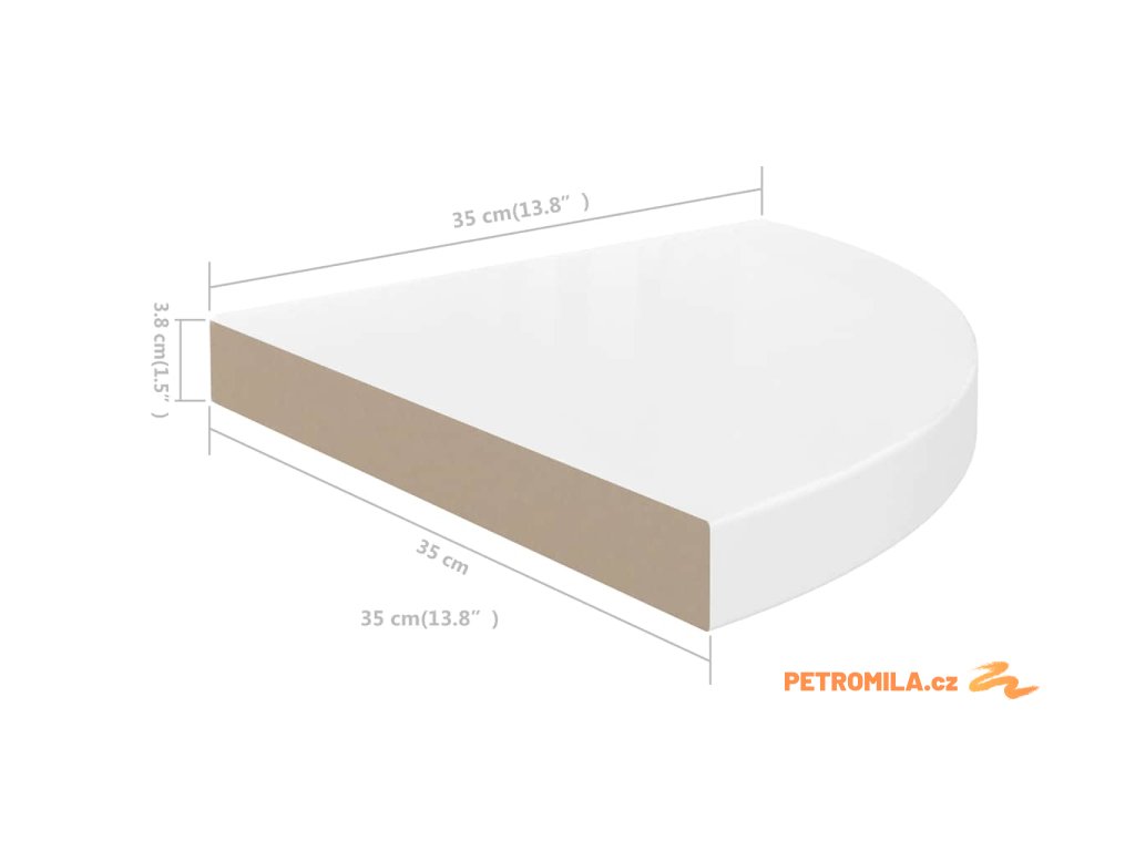 Plovoucí rohové police 2 ks bílé vysoký lesk 35x35x3,8 cm MDF