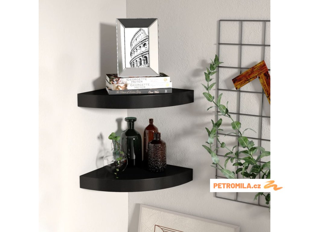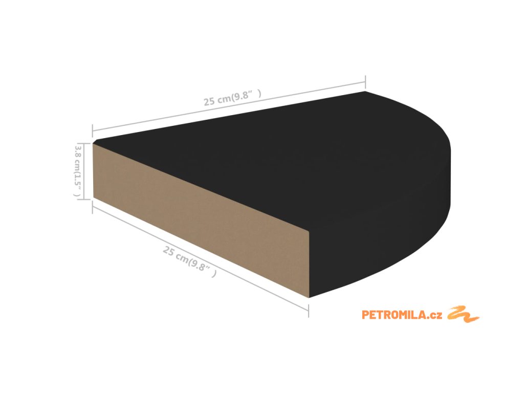 Plovoucí rohové police 2 ks černé 25 x 25 x 3,8 cm MDF