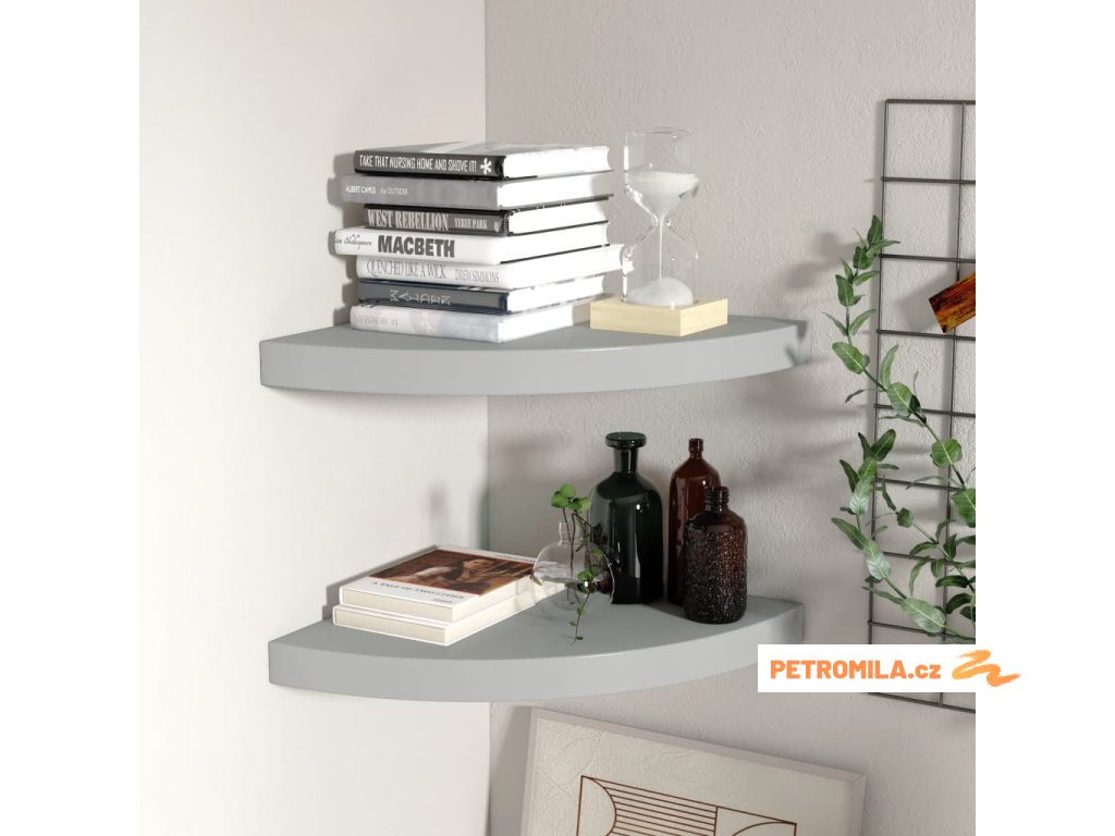 Plovoucí rohové police 2 ks šedé 35 x 35 x 3,8 cm MDF