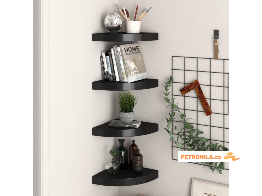 Plovoucí rohové police 4 ks černé 25 x 25 x 3,8 cm MDF