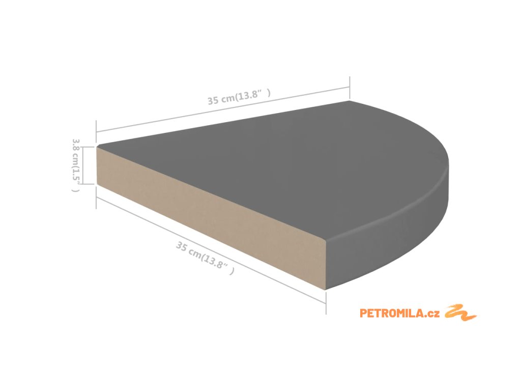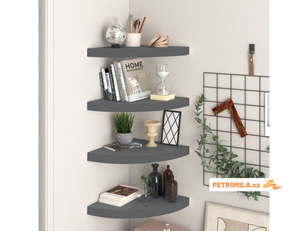 Plovoucí rohové police 4 ks šedé vysoký lesk 35x35x3,8 cm MDF