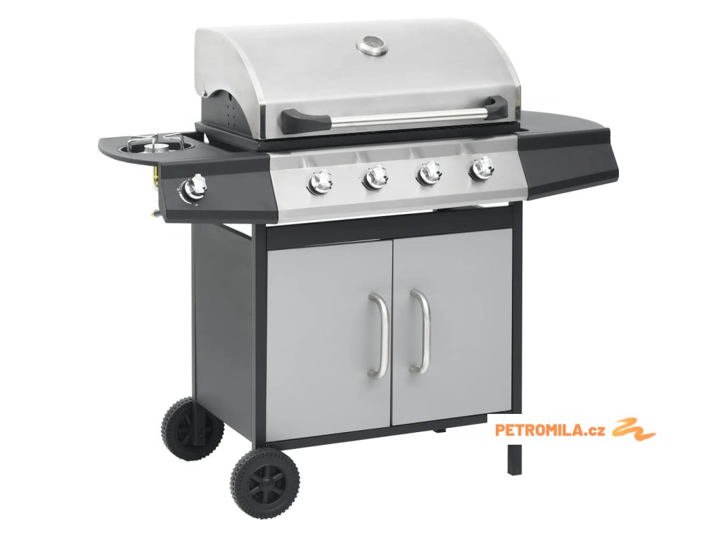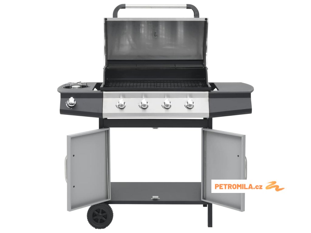 Plynový gril 4+1 hořáky černý a stříbrný ocel a nerezová ocel