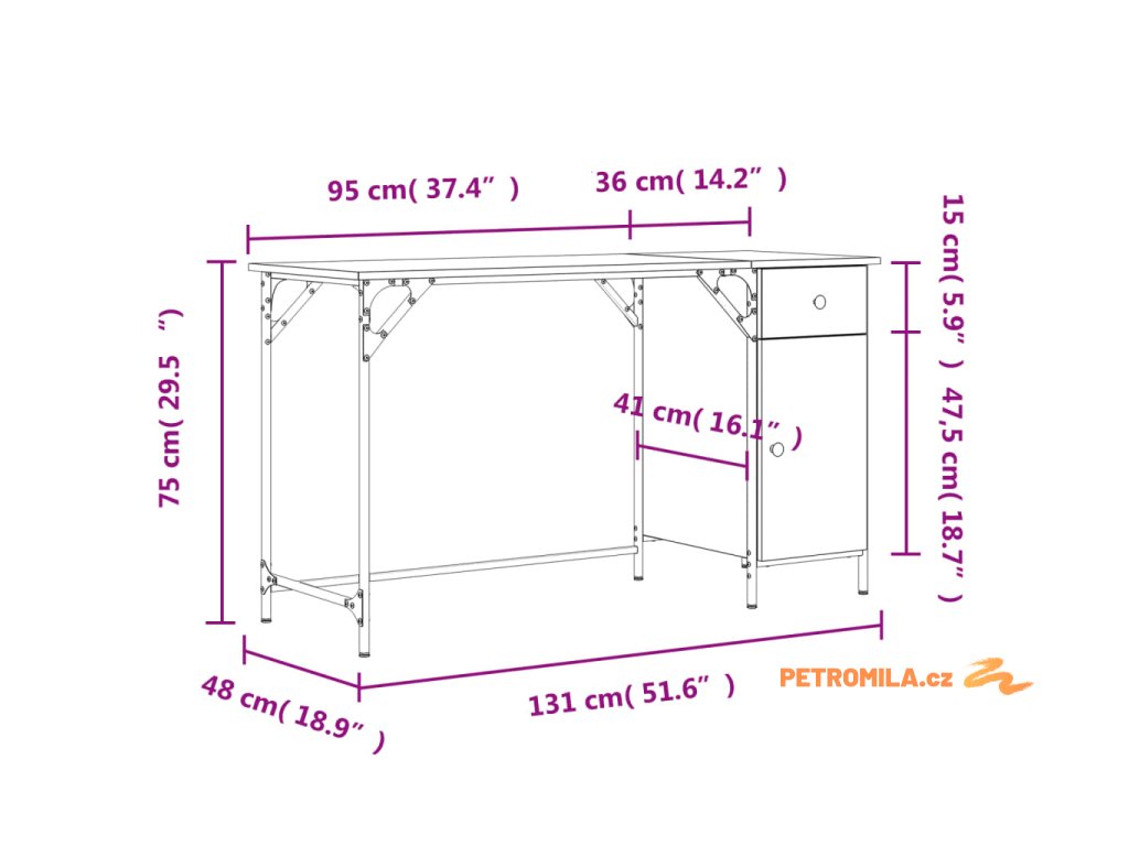 Počítačový stůl kouřový dub 131 x 48 x 75 cm kompozitní dřevo