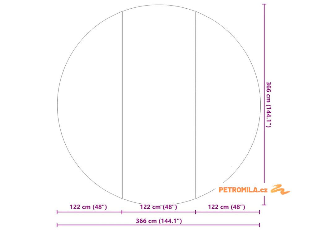 - Celkové rozměry: 366 x 366 x 0.1 cm (D x Š x V)