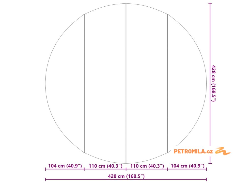 - Celkové rozměry: 428 x 428 x 0.1 cm (D x Š x V)