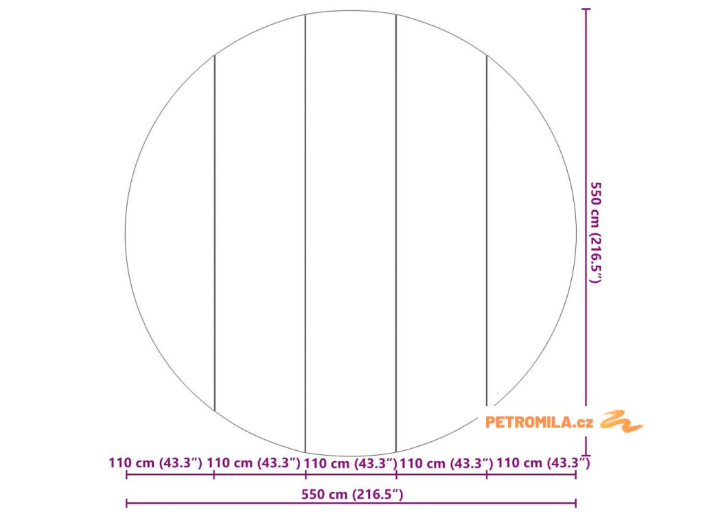 - Celkové rozměry: 550 x 550 x 0.2 cm (D x Š x V)
