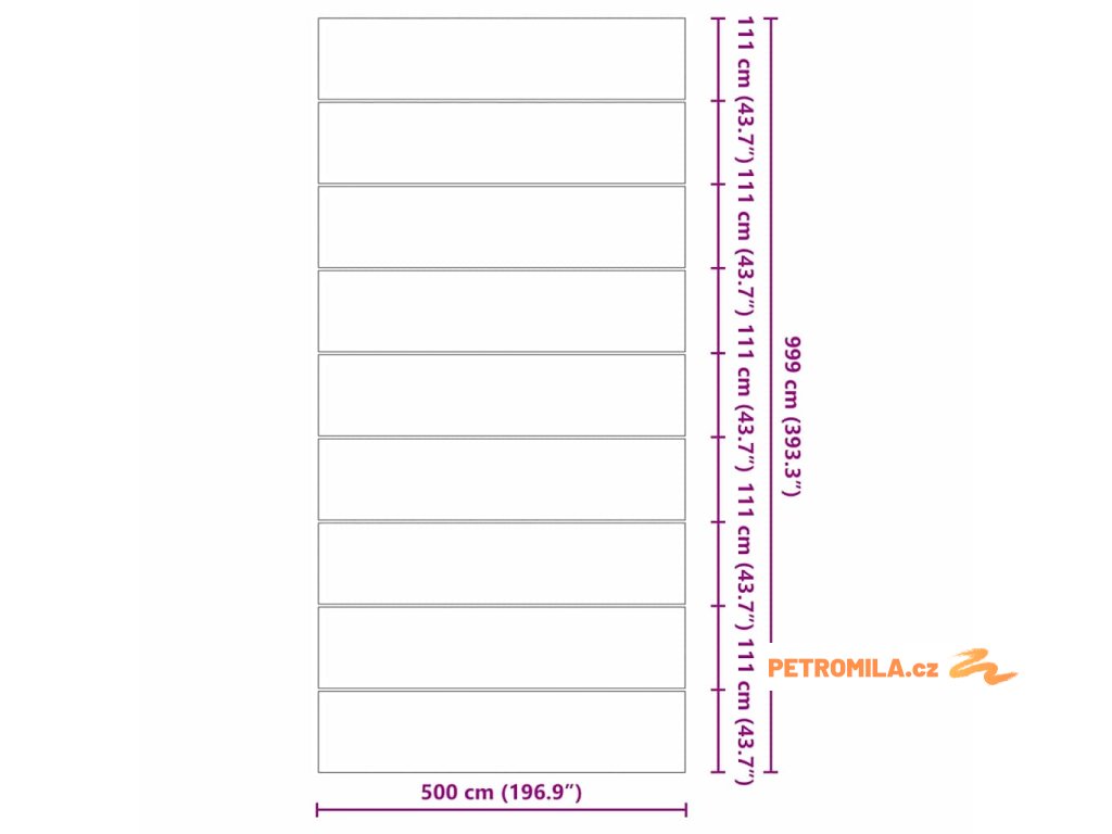- Celkové rozměry: 999 x 500 x 0.1 cm (D x Š x V)