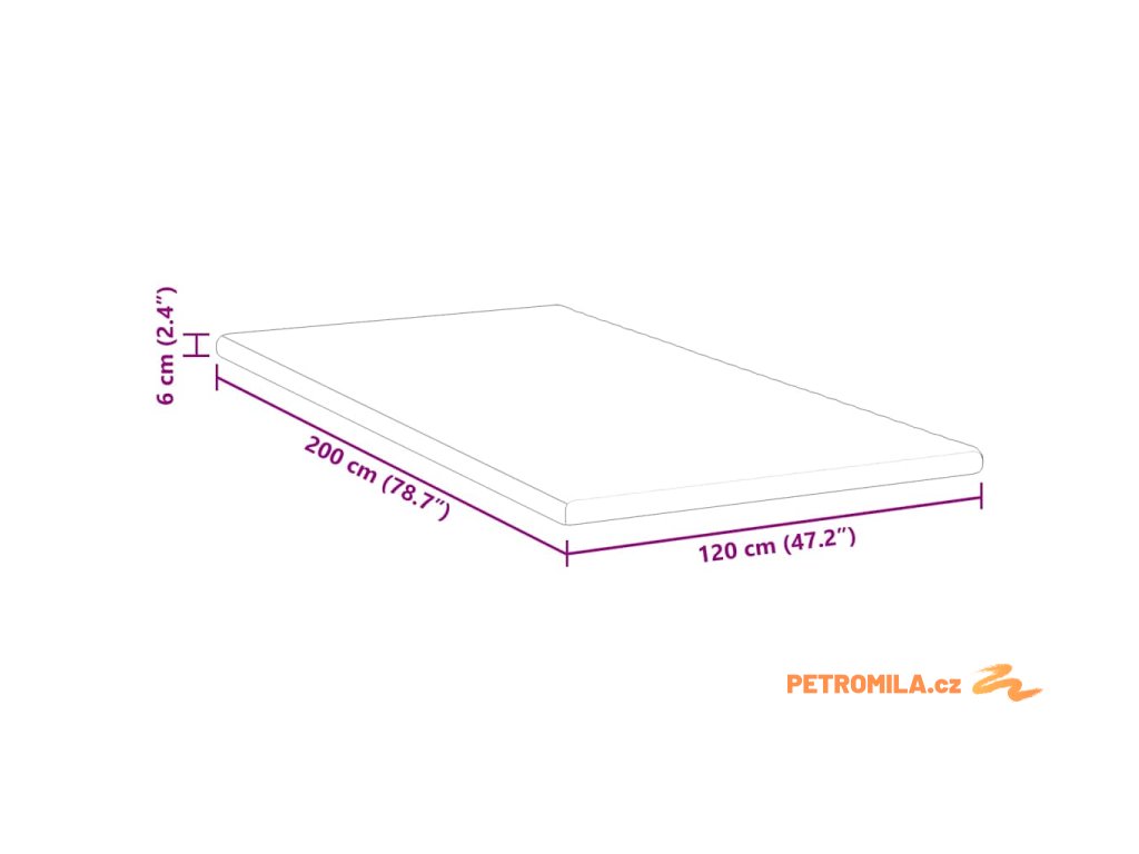 - Celkové rozměry: 200 x 120 x 6 cm (D x Š x V)