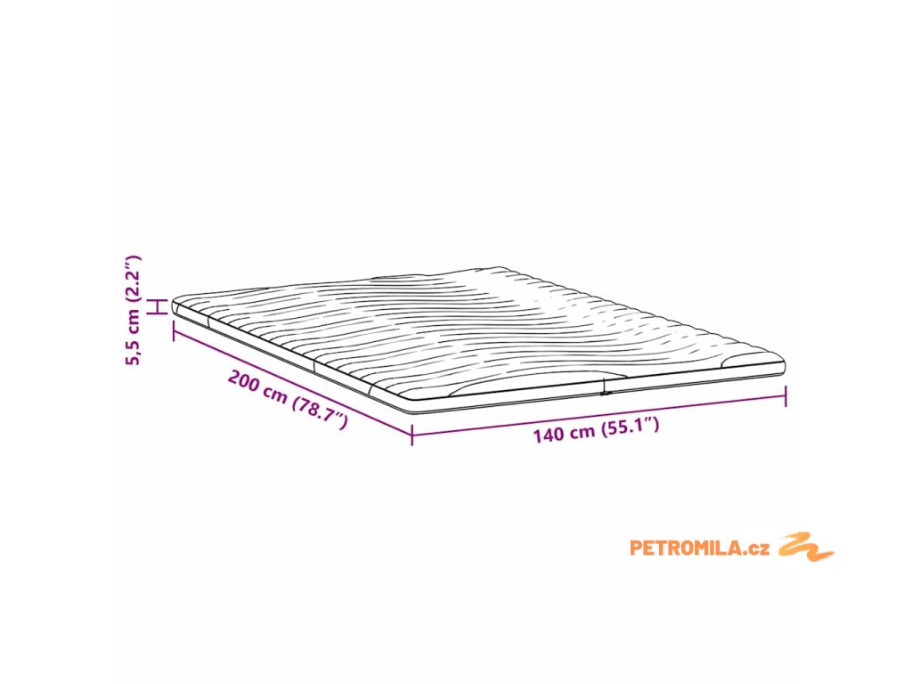 - Celkové rozměry: 200 x 140 x 5,5 cm (D x Š x V)