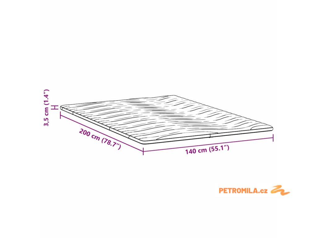 - Celkové rozměry: 200 x 140 x 3,5 cm (D x Š x V)