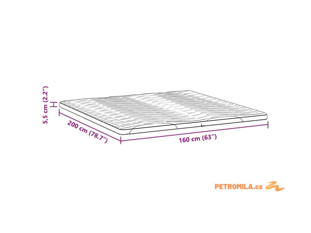 - Celkové rozměry: 200 x 160 x 5.5 cm (D x Š x V)