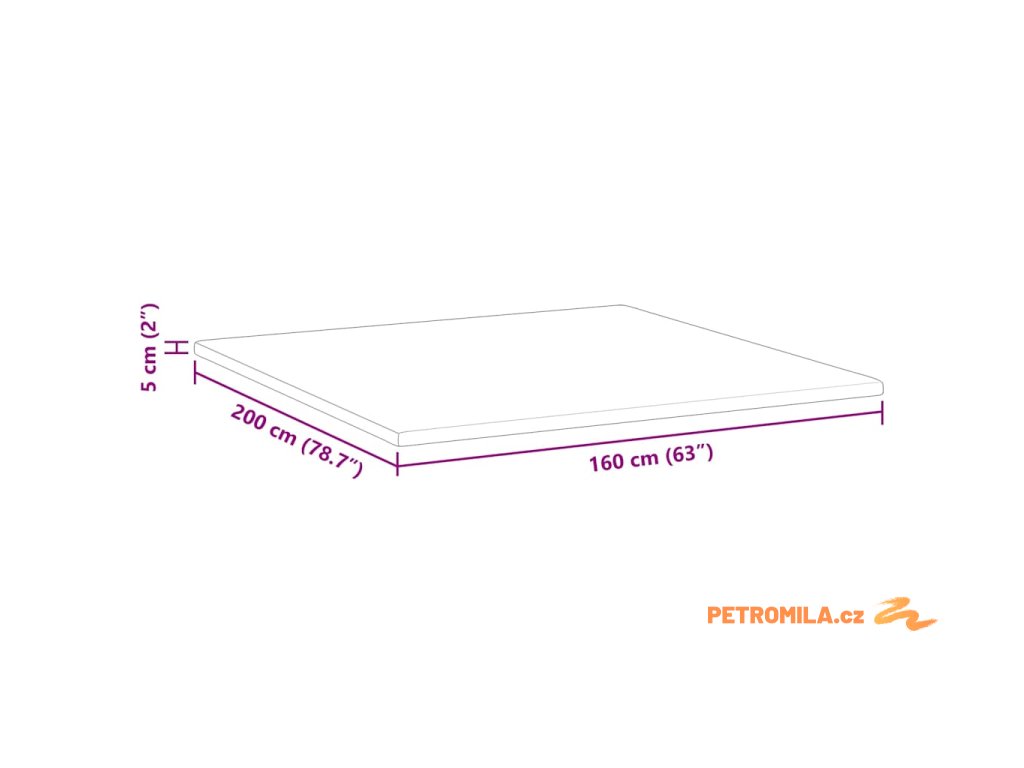 - Celkové rozměry: 200 x 160 x 5 cm (D x Š x V)