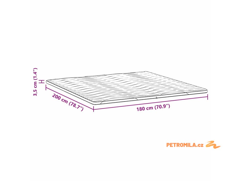 - Celkové rozměry: 200 x 180 x 3,5 cm (D x Š x V)