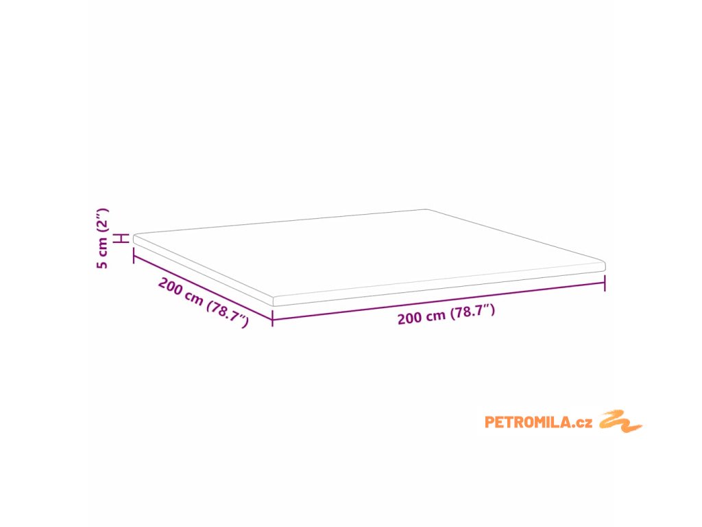 - Celkové rozměry: 200 x 200 x 5 cm (D x Š x V)