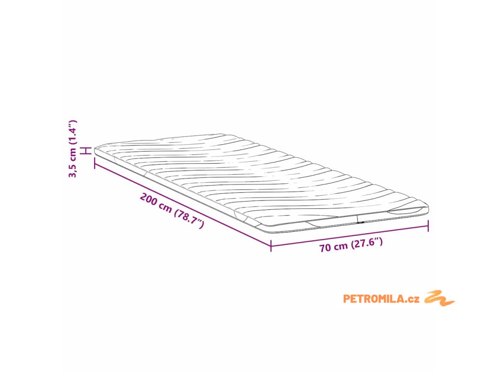 - Celkové rozměry: 200 x 70 x 3,5 cm (D x Š x V)