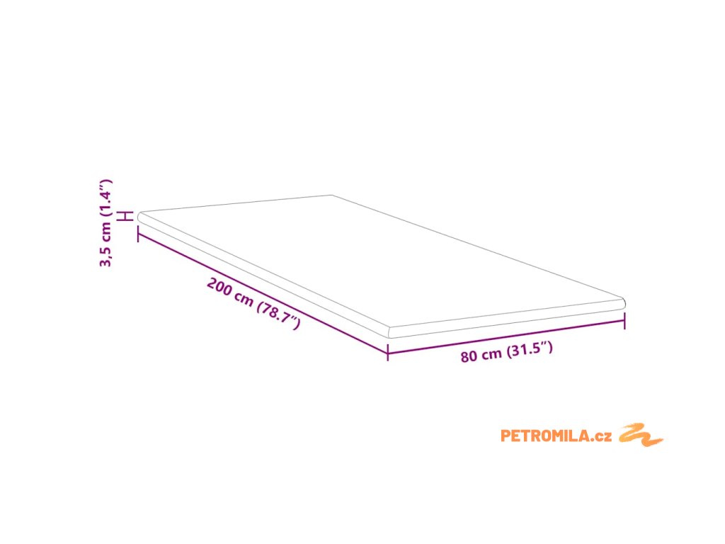 - Celkové rozměry: 200 x 80 x 3.5 cm (D x Š x V)