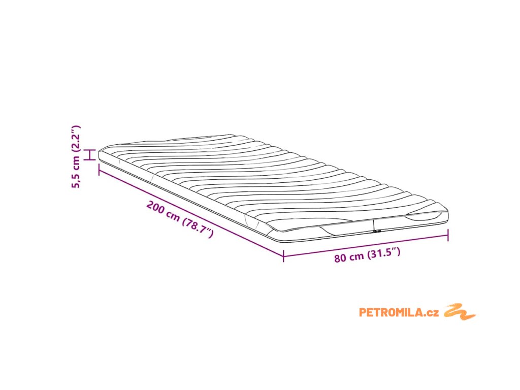 - Celkové rozměry: 200 x 80 x 5,5 cm (D x Š x V)