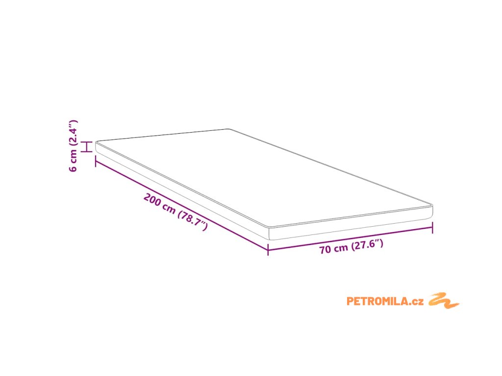 - Celkové rozměry: 200 x 70 x 6 cm (D x Š x V)