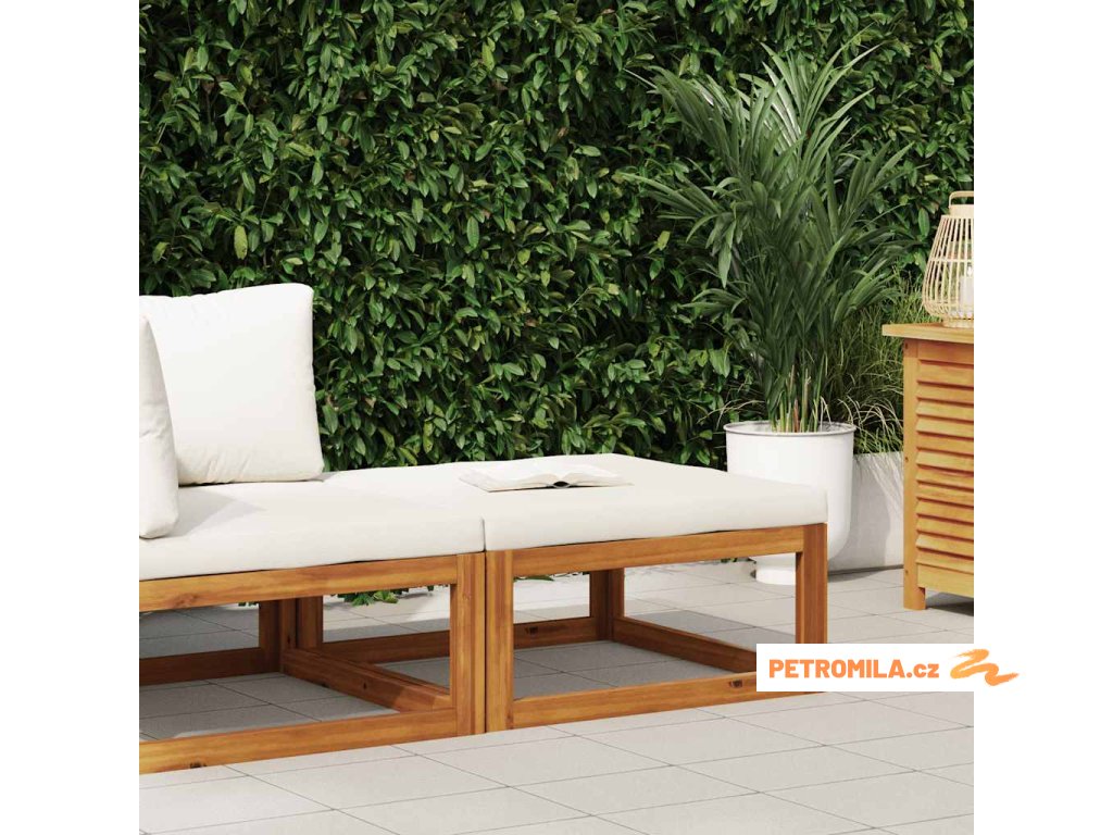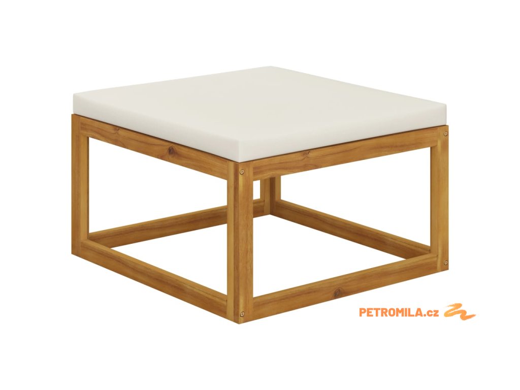 Podnožka s krémově bílou poduškou masivní akáciové dřevo