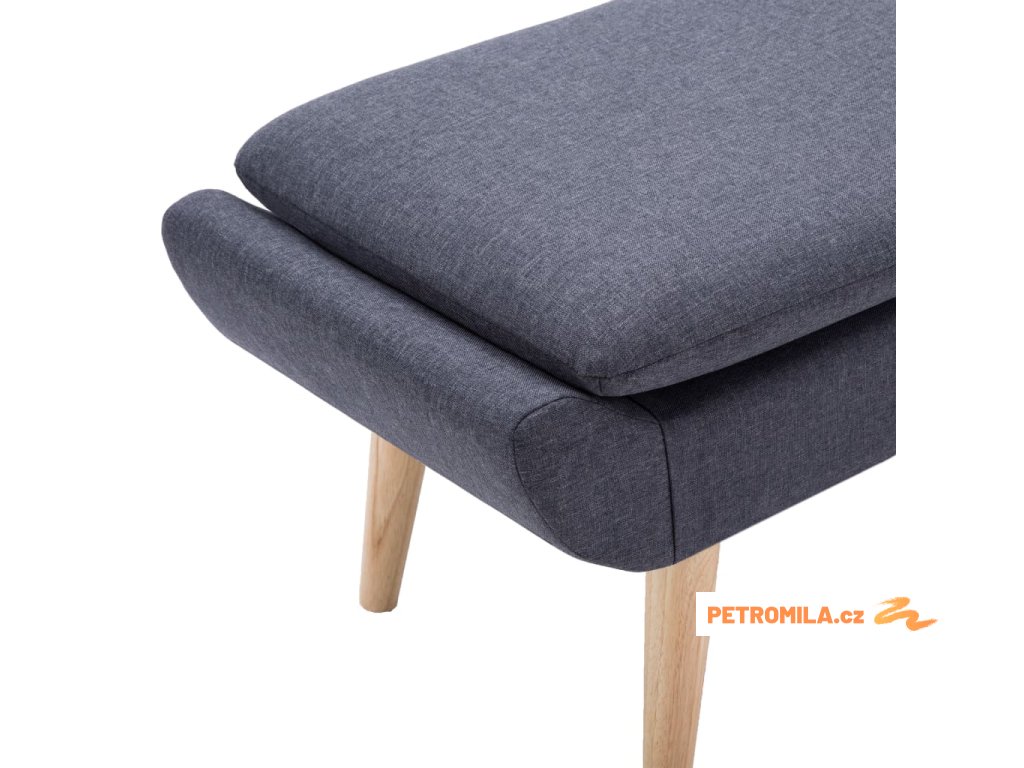 - Materiál: textilní čalounění + dřevo kaučukovníku