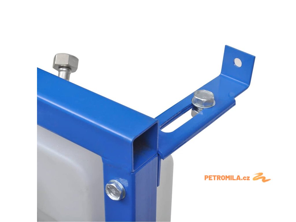 Skrytá nádrž se skládá z robustního ocelového rámu s výškově nastavitelnými nožičkami a z HDPE nádrže na vodu, která je odolná proti korozi a teplotě.