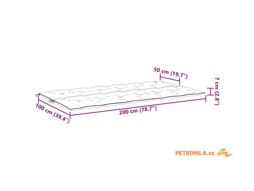 - Celkové rozměry: 200 x (50+50) x 7 cm (D x Š x T)