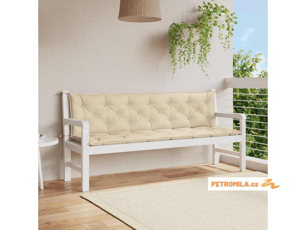 Poduška na zahradní lavici béžová 200x(50+50)x7 cm látka oxford