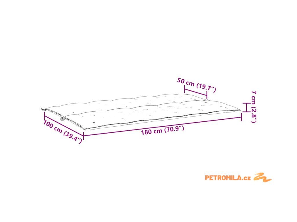 - Celkové rozměry: 180 x (50+50) x 7 cm (D x Š x T)