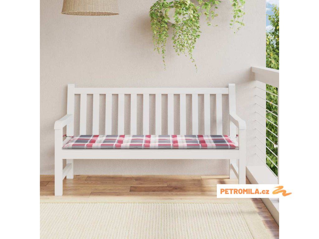 Poduška na zahradní lavici červená károvaná 150x50x4 cm oxford