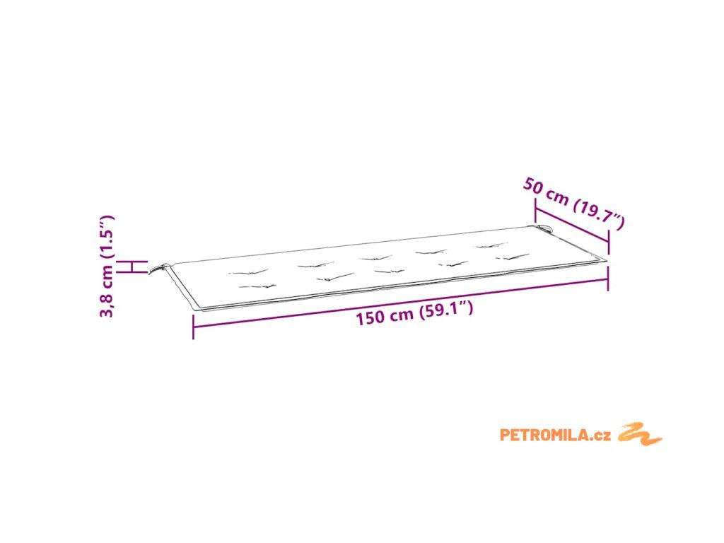 Poduška na zahradní lavici šedá károvaná 150x50x4 cm oxford