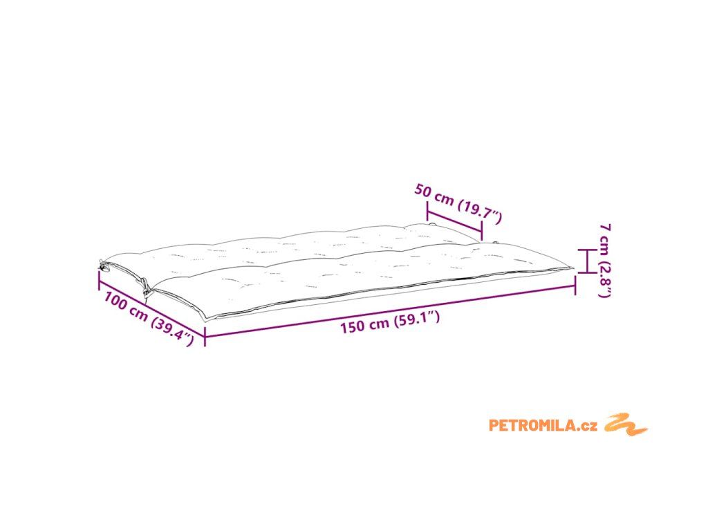 - Celkové rozměry: 150 x (50+50) x 7 cm (D x Š x T)