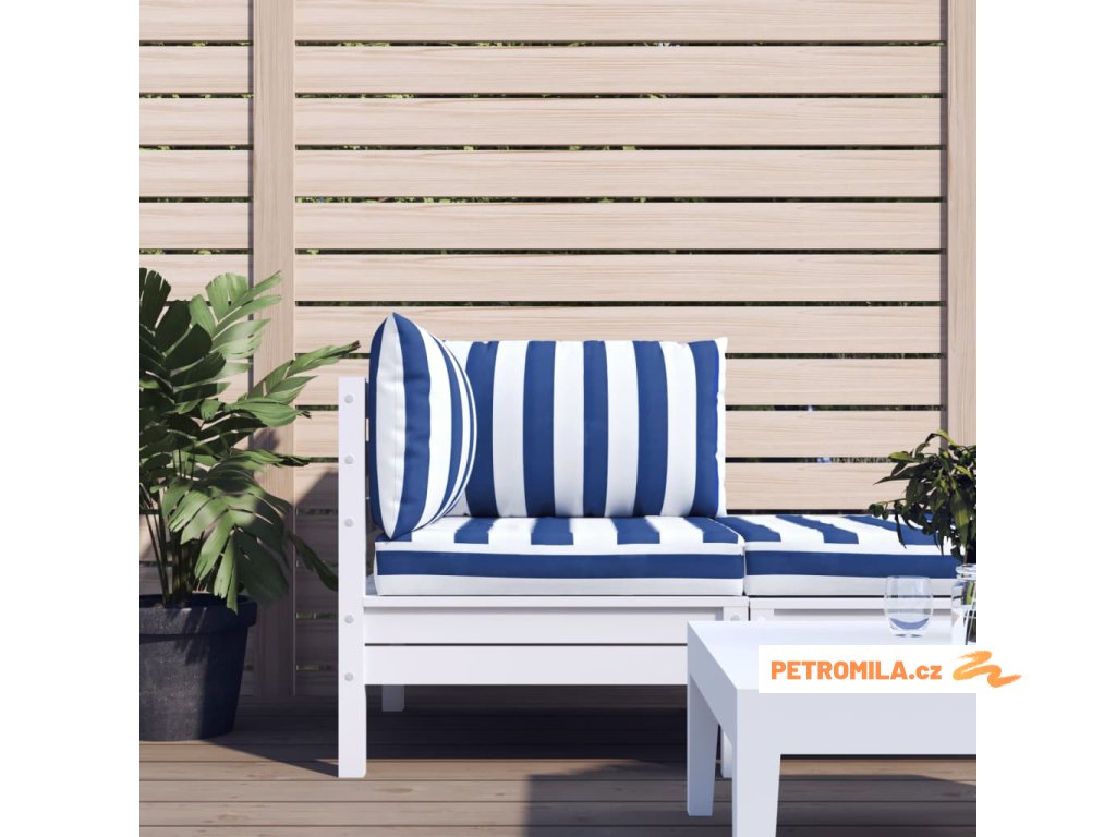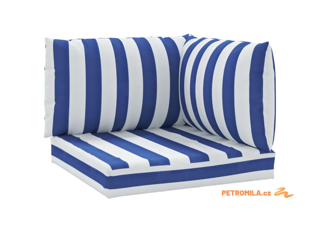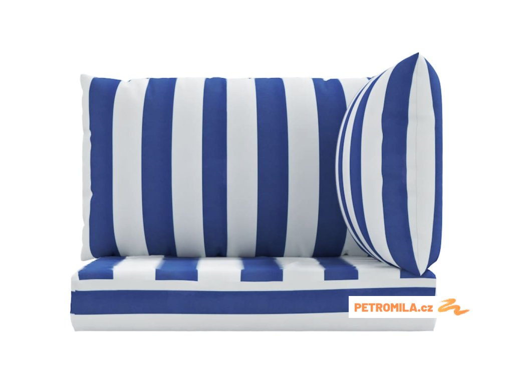 Podušky na nábytek z palet 3 ks modré a bílé pruhy oxford