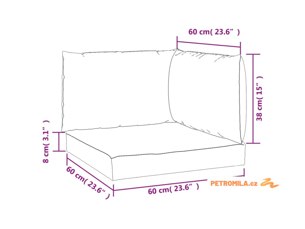 - Rozměry bočních polštářů: 60 x 38 x 13 cm (D x Š x V)