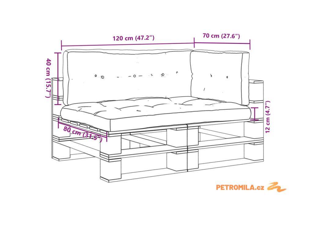 - 1x poduška na sedák: 120 x 80 x 12 cm (D x Š x T)