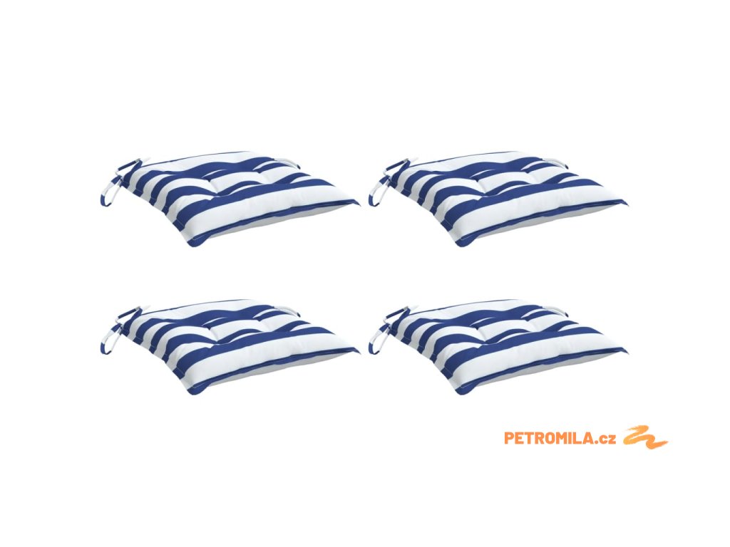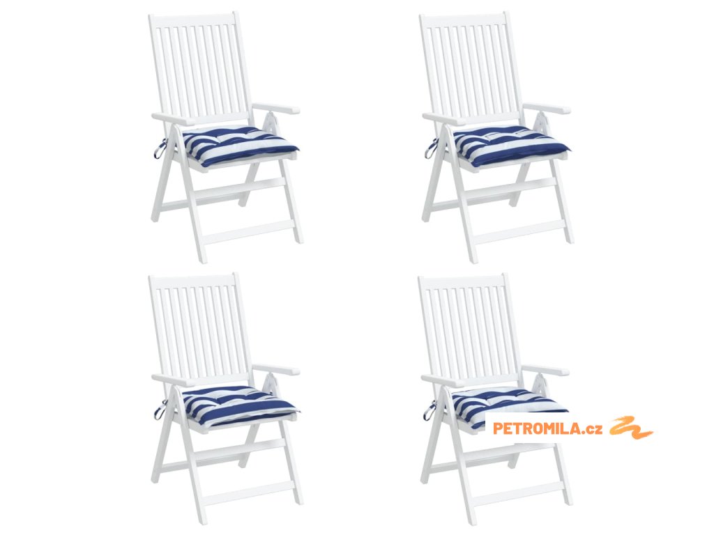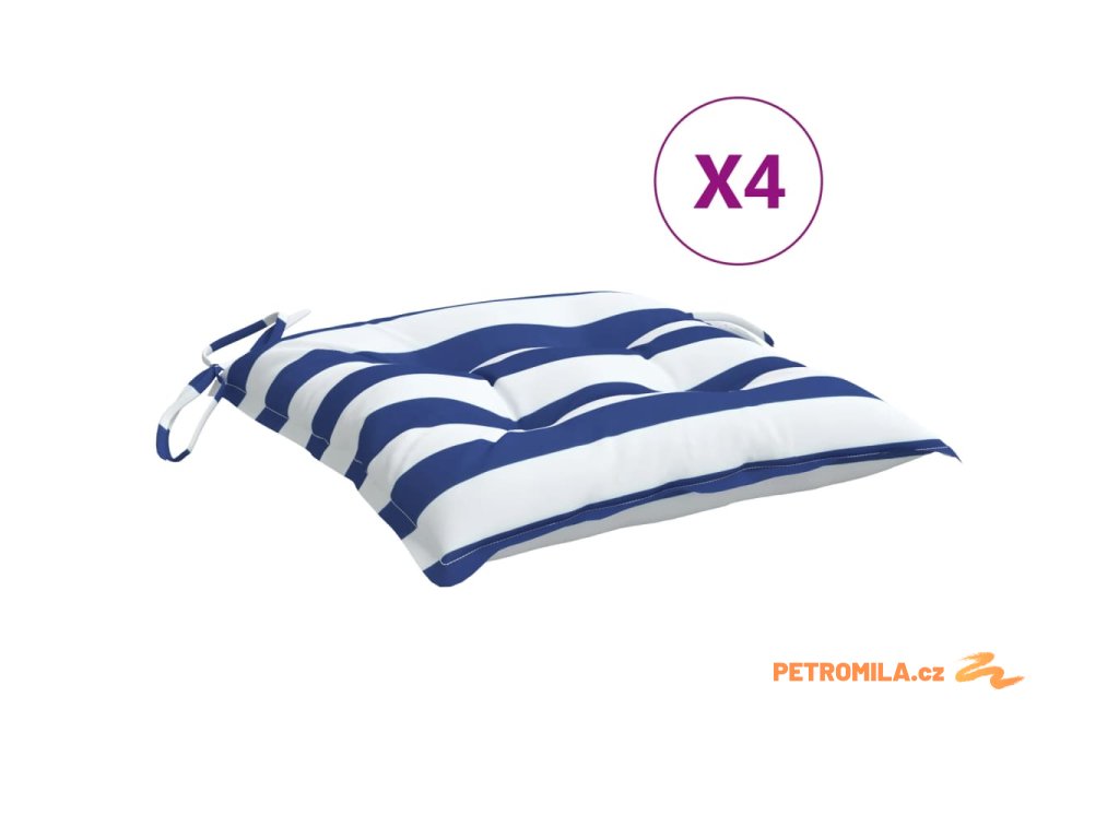 Podušky na židli 4 ks modré a bílé pruhy 50 x 50 x 7 cm oxford
