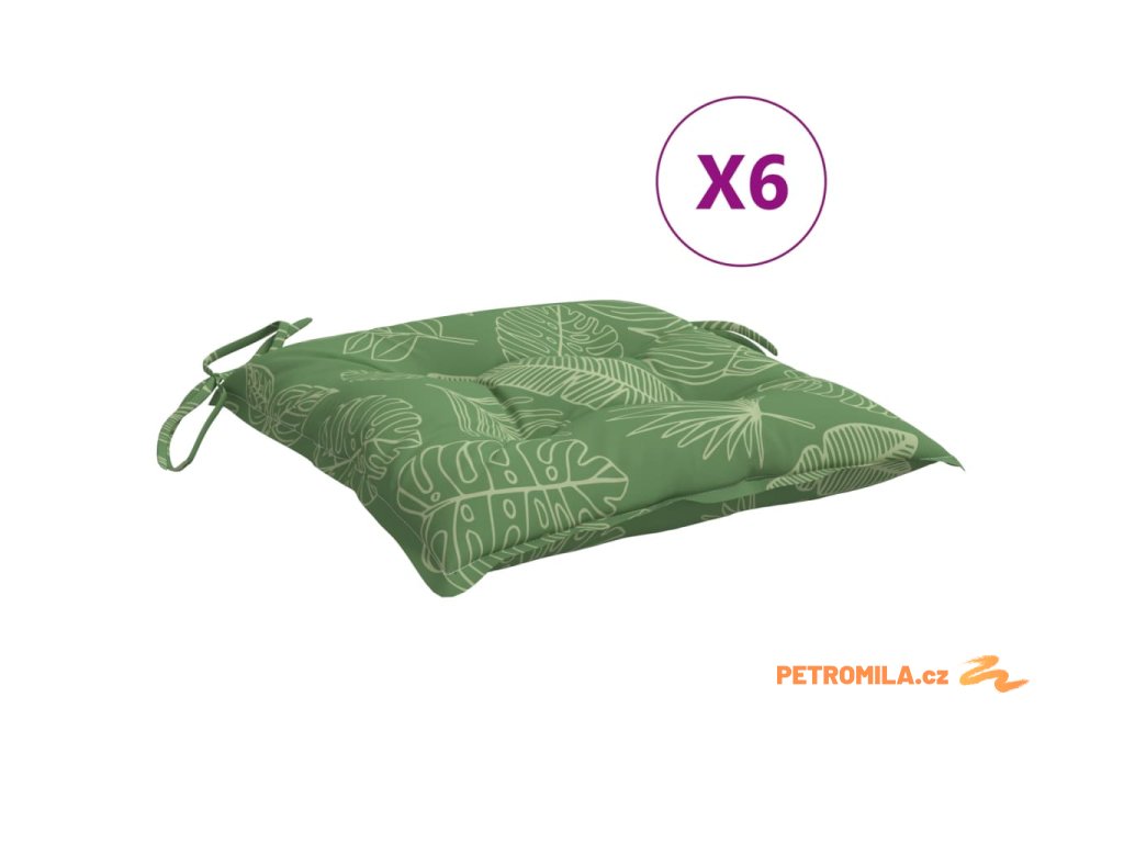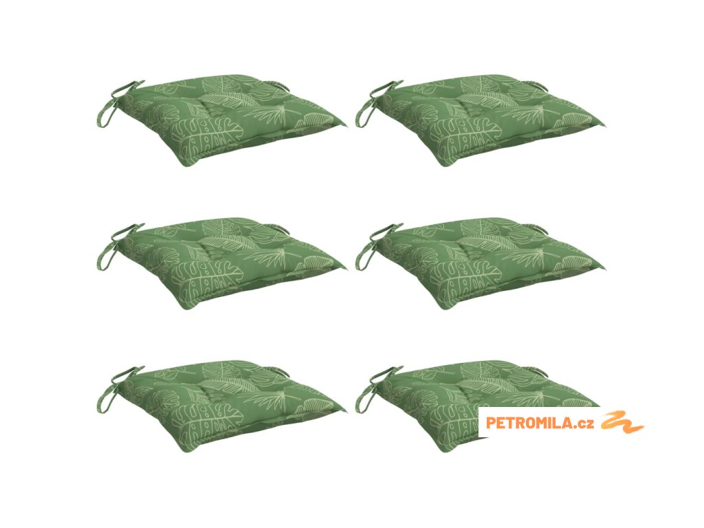 Podušky na židli 6 ks vzor listů 50 x 50 x 7 cm textil