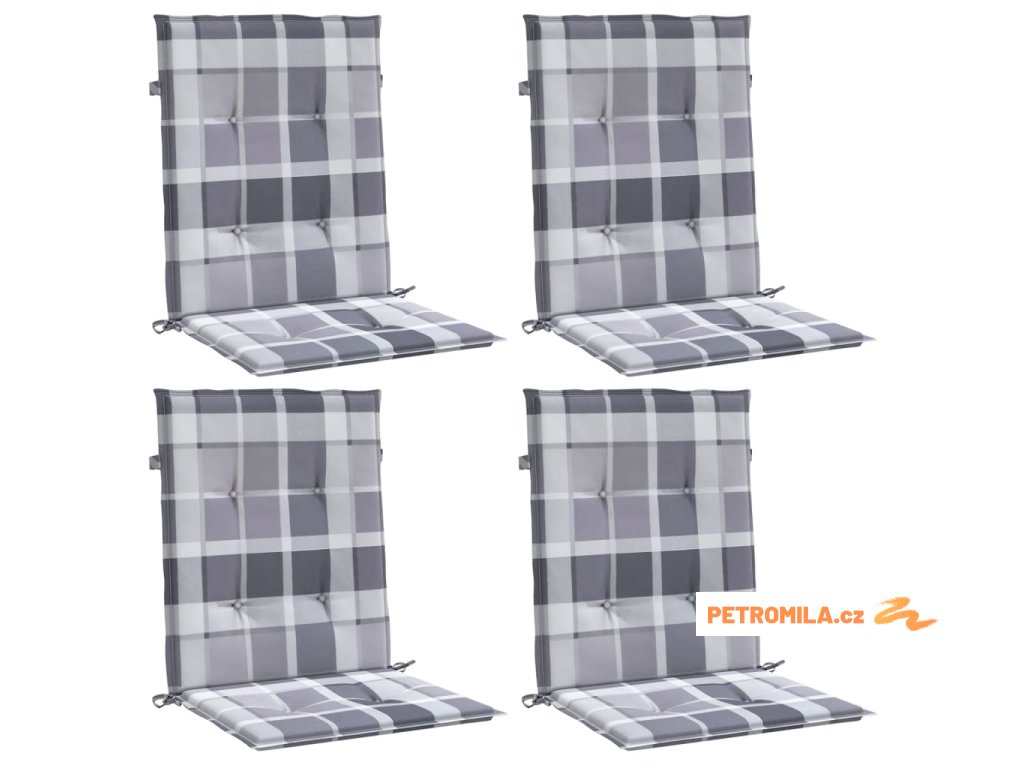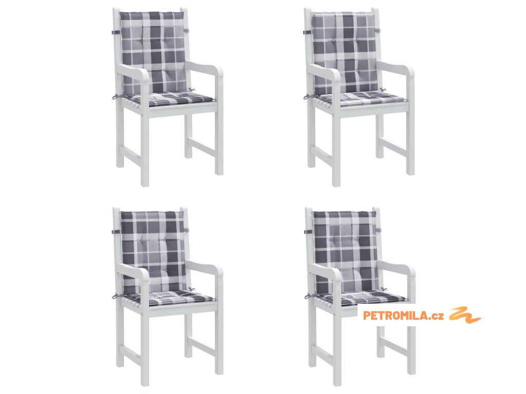 Podušky na židli nízké opěradlo 4 ks šedé kárované 100x50x3 cm