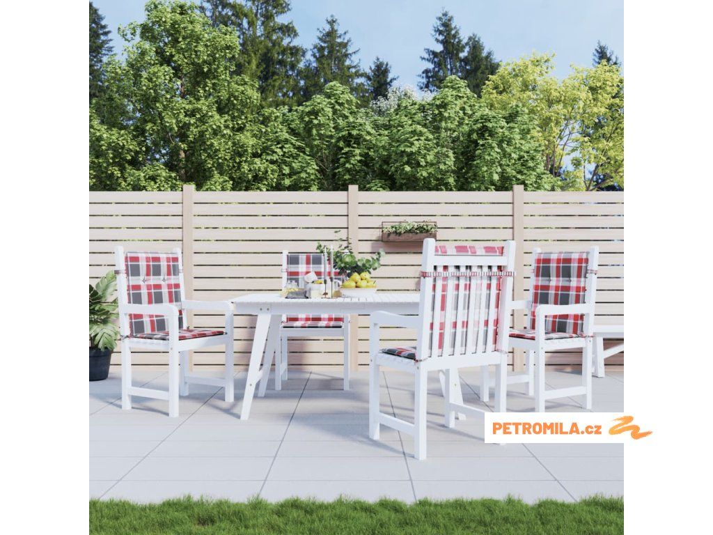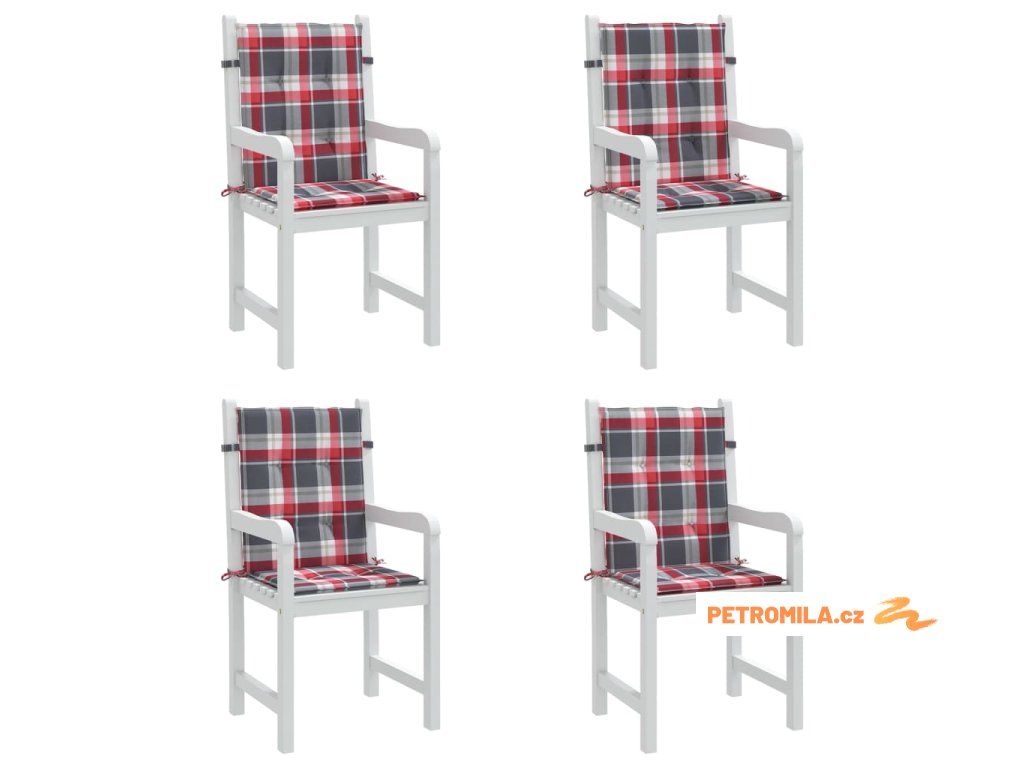 Podušky na židli nízké opěradlo 4ks červené kárované 100x50x3cm