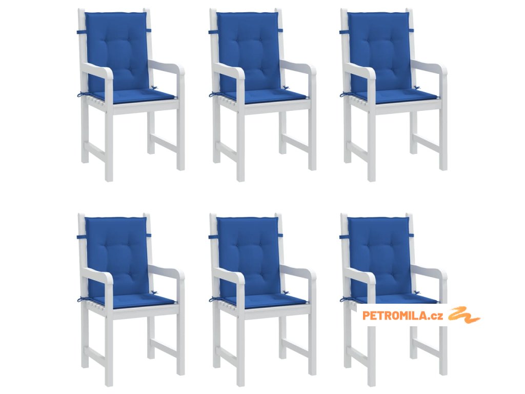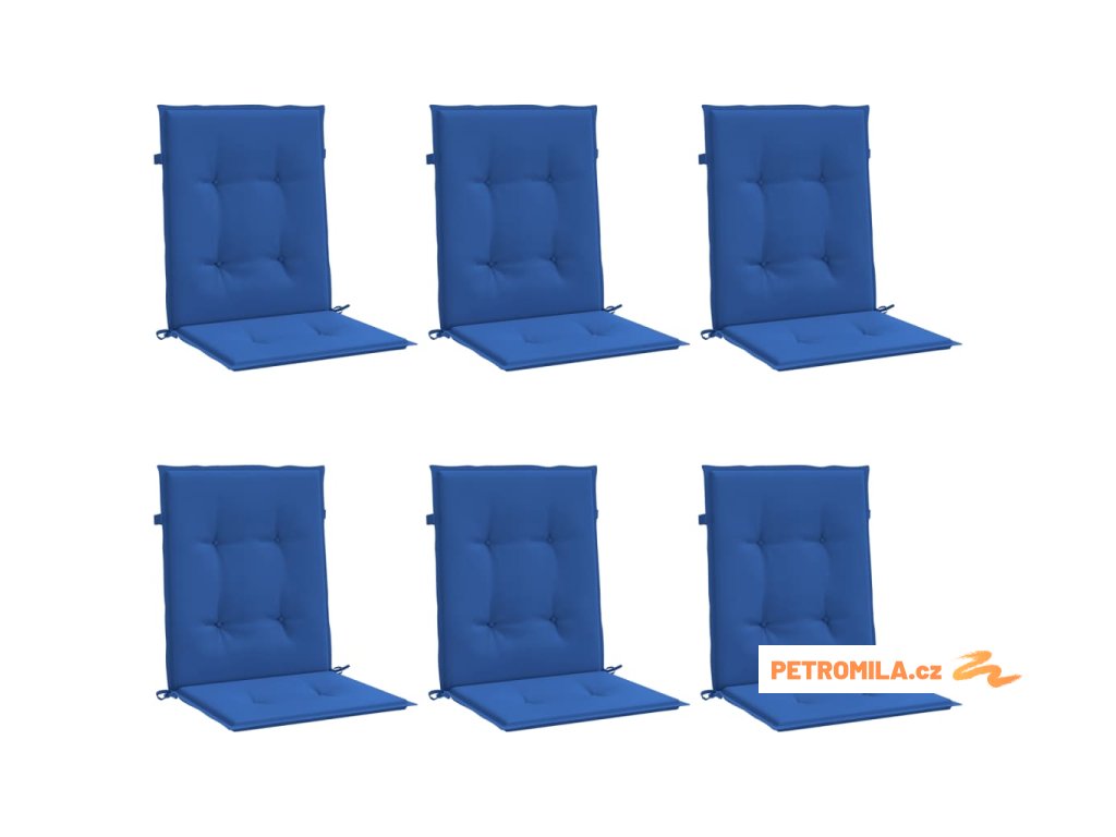 Podušky na židli nízké opěradlo 6 ks královsky modré 100x50x3cm