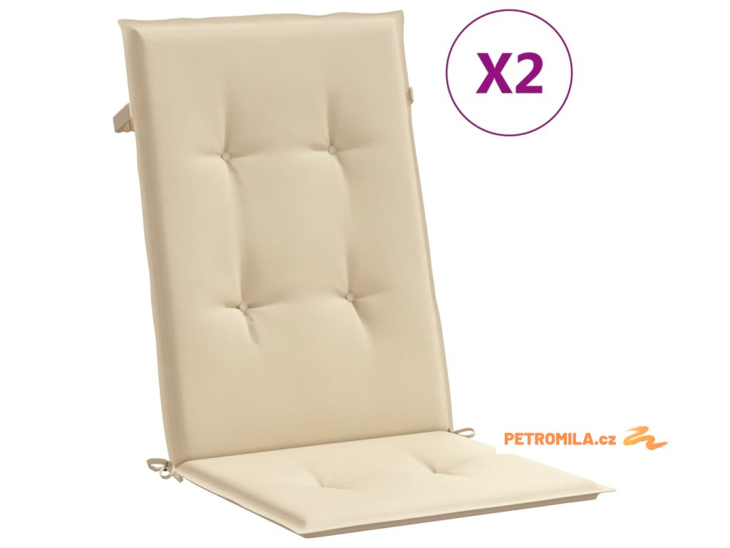 Podušky na židli vysoké opěradlo 2 ks béžové 120x50x3 cm textil