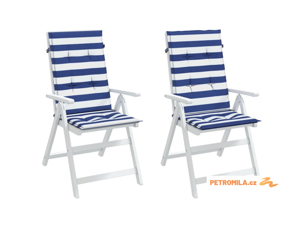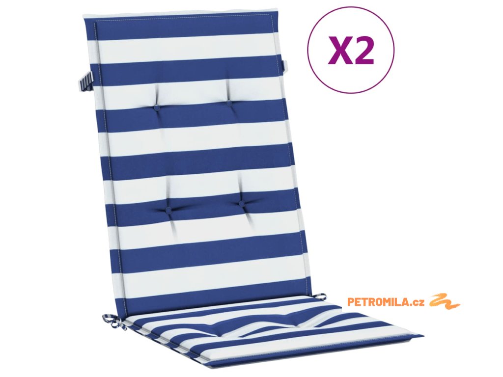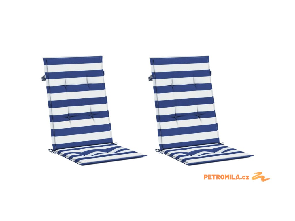 Podušky na židli vysoké opěradlo 2 ks modré a bílé pruhy textil