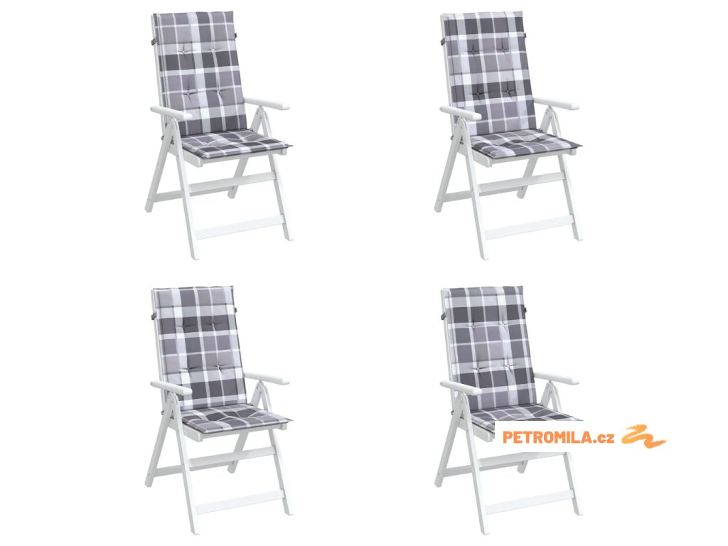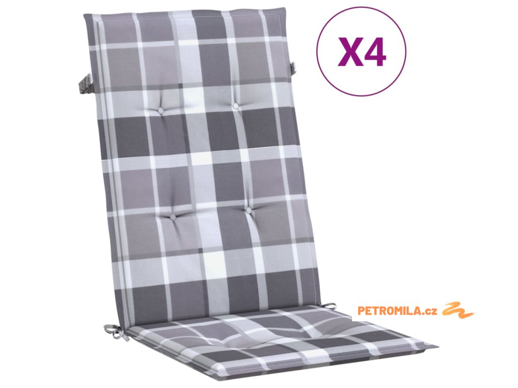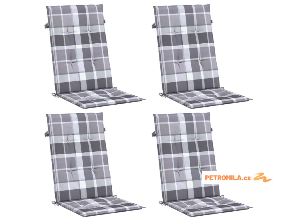 Podušky na židli vysoké opěradlo 4 ks šedé kárované 120x50x3 cm