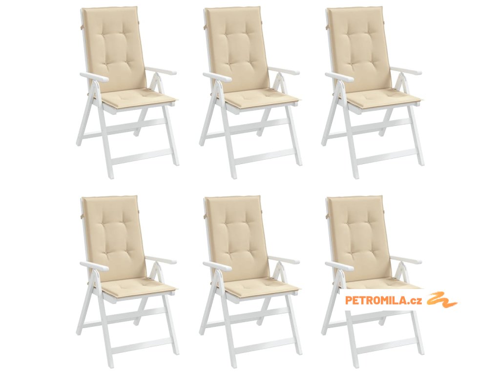 Podušky na židli vysoké opěradlo 6 ks béžové 120x50x3 cm textil