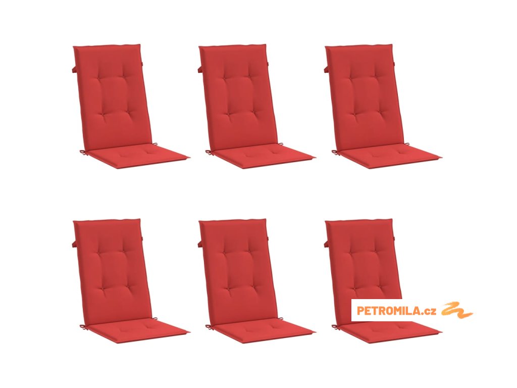 Podušky na židli vysoké opěradlo 6 ks červené 120x50x3cm textil