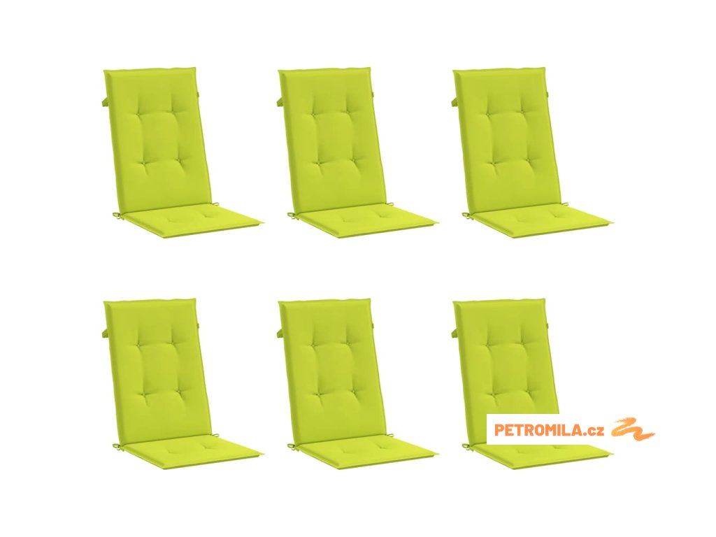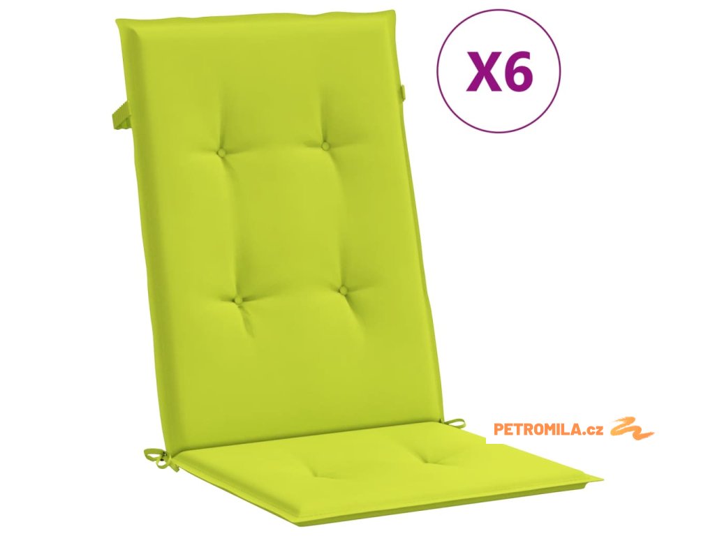 Podušky na židli vysoké opěradlo 6 ks jasně zelené 120x50x3 cm