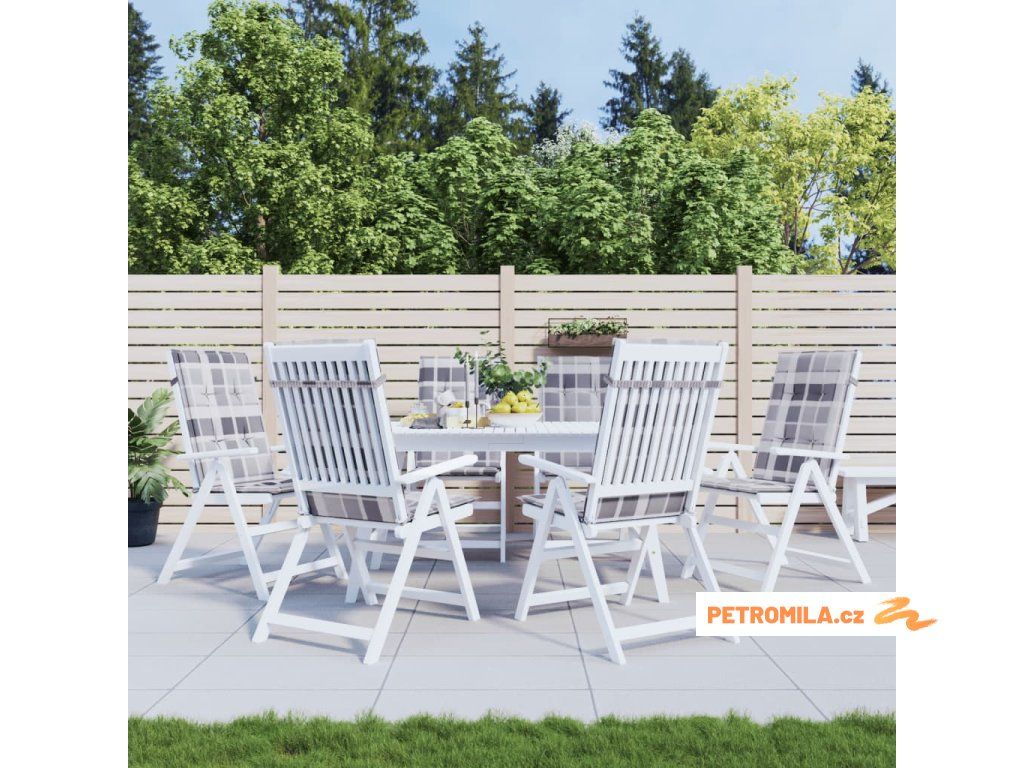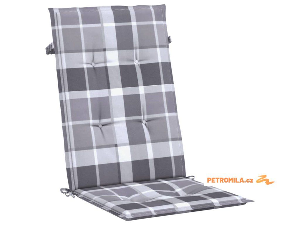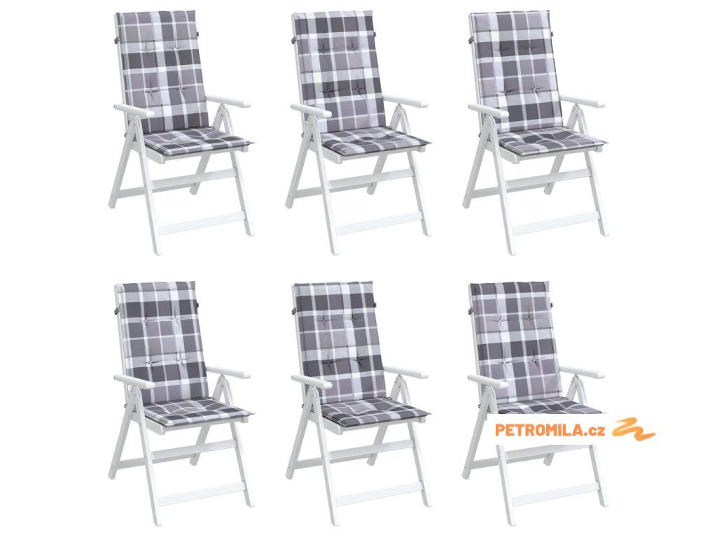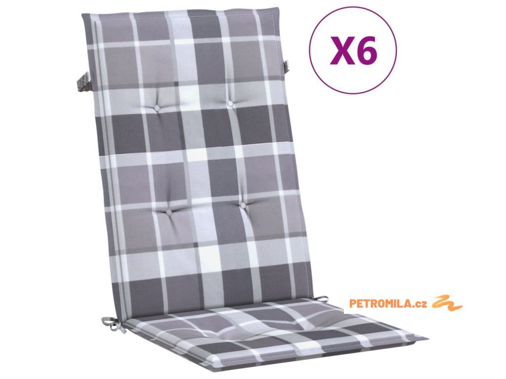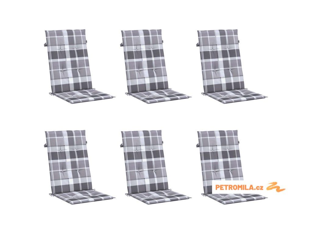 Podušky na židli vysoké opěradlo 6 ks šedé kárované 120x50x3 cm
