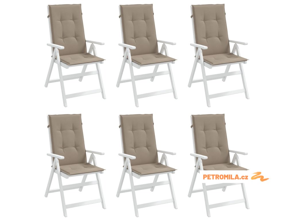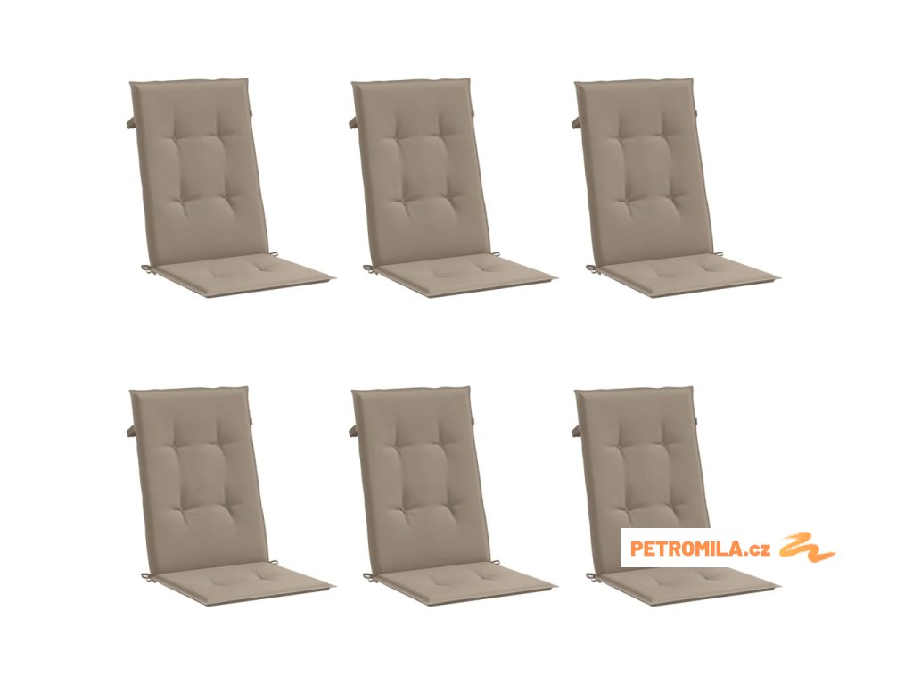 Podušky na židli vysoké opěradlo 6 ks taupe 120x50x3 cm textil