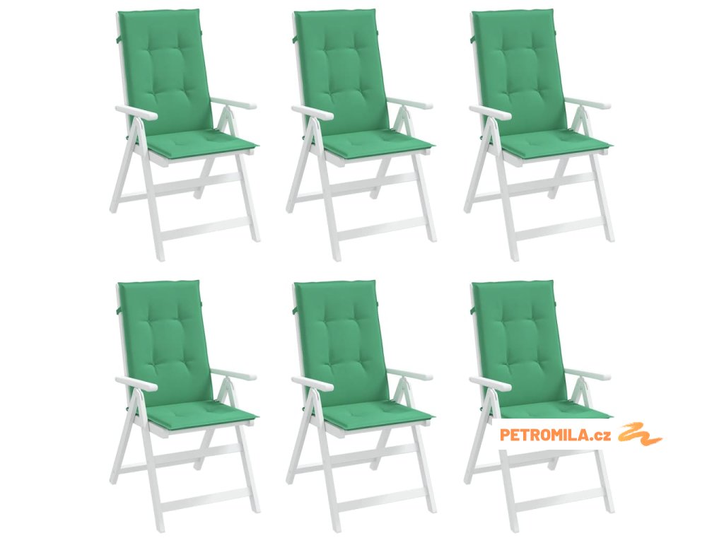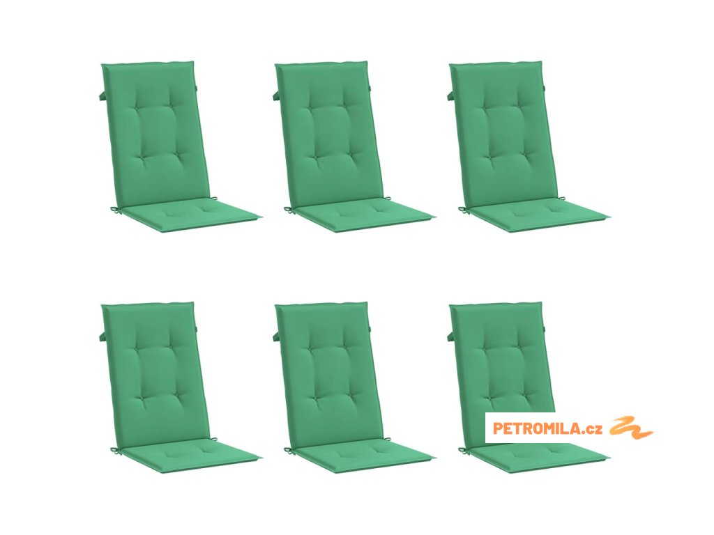 Podušky na židli vysoké opěradlo 6 ks zelené 120x50x3 cm textil